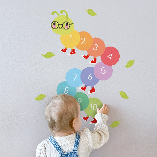 Iloinen toukka tepsuttelee seinää pitkin askel kerrallaan. Kirkkailla väreillään ja ystävällisellä hymyllään se tuo iloa ja lämpöä mihin tahansa lastenhuoneeseen. Toukka-seinätarrat eivät ole vain koriste, vaan ne herättävät uteliaisuutta ja kutsuvat pieniin oppimishetkiin joka kerta, kun lapsi pysähtyy tutkiskelemaan niitä. Toukan kehossa olevien selkeiden numeroiden ansiosta lapselle avautuu mahdollisuus harjoitella laskemista sekä numeroiden ymmärtämistä ja järjestystä hauskalla ja luontevalla tavalla.